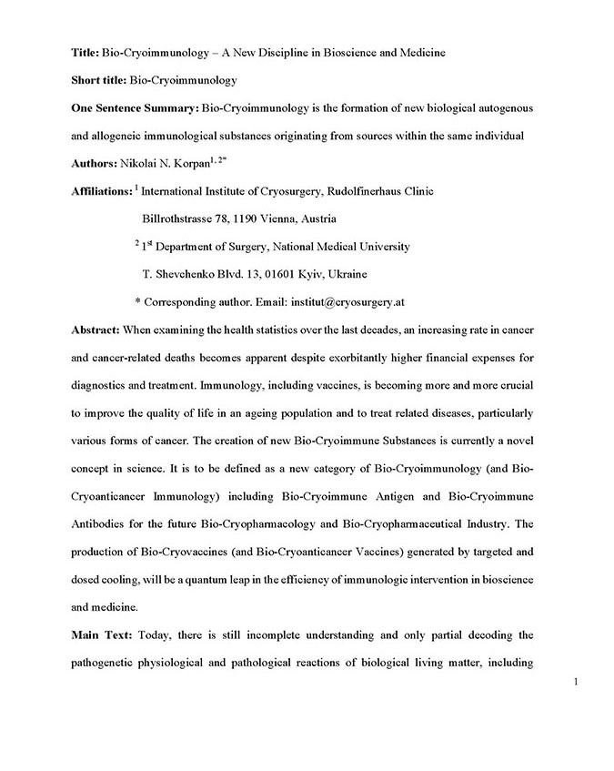 - Nikolai Korpan. Autologous Cryo-Immunology. New fundamental cryo-immunological direction in biomedical science and practice. Cryobiology. 2023-03. 0000-0003-0497-8420