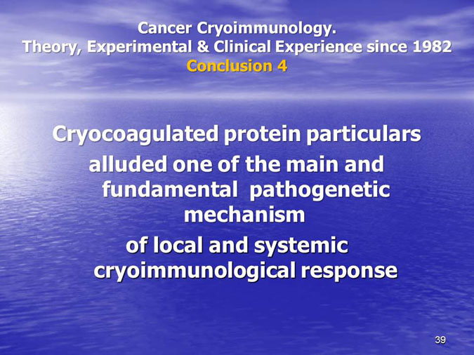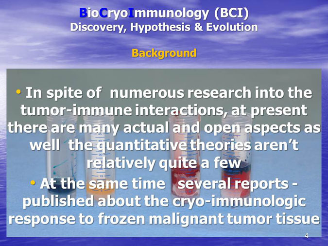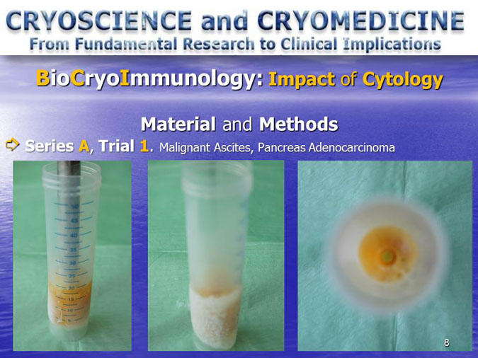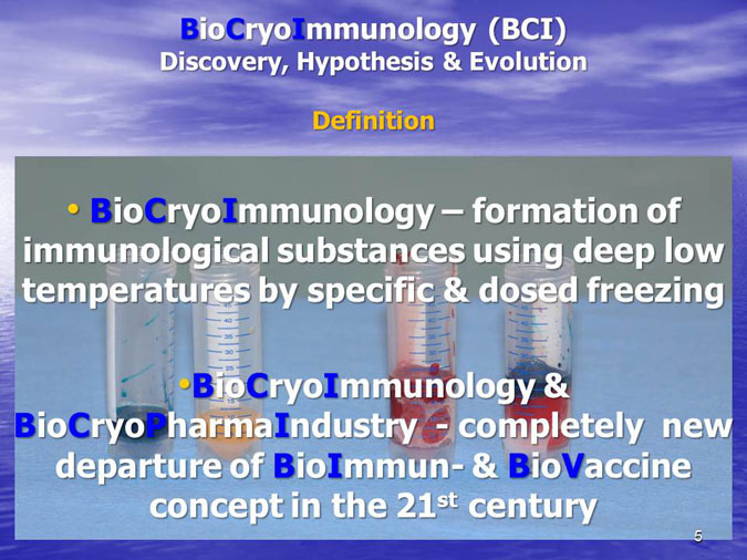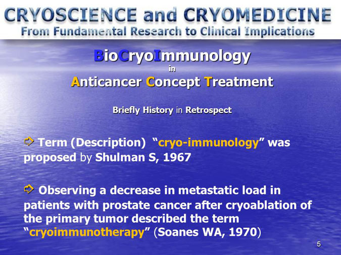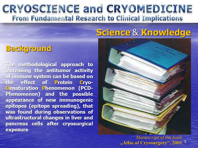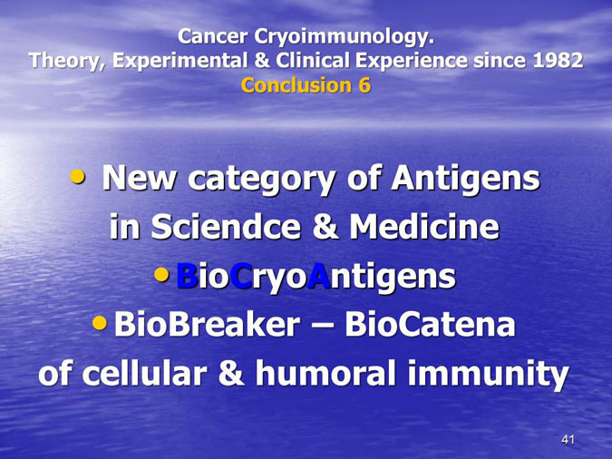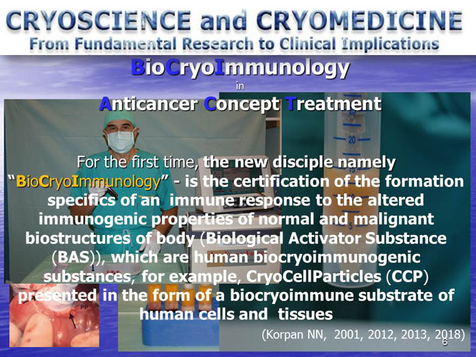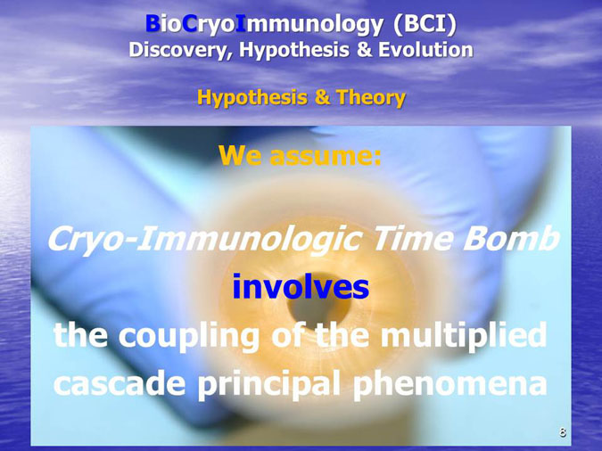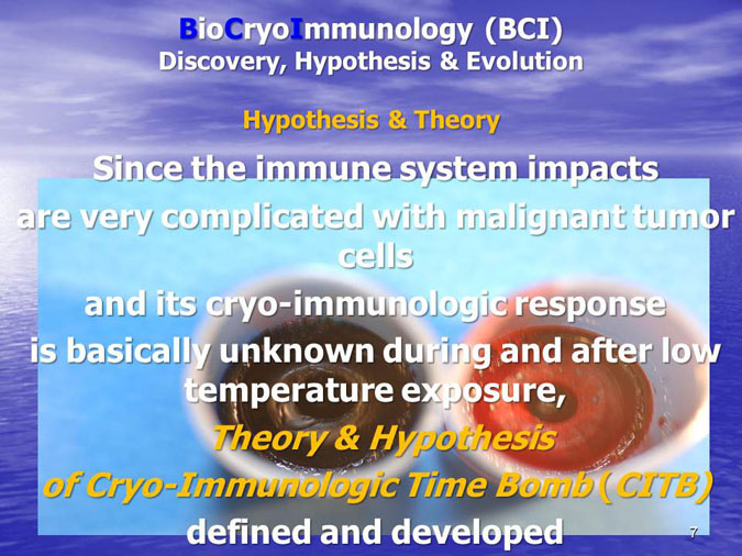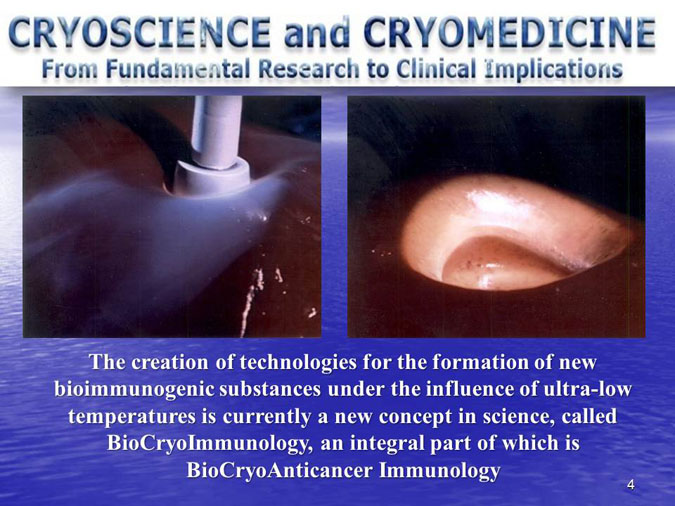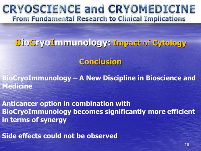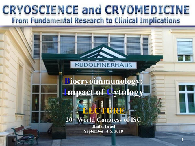 The novel research subject entitled “Biocryoimmunology” was reported in the numerous International Congresses and Conferences in form of “Oral Presentation” in fact,