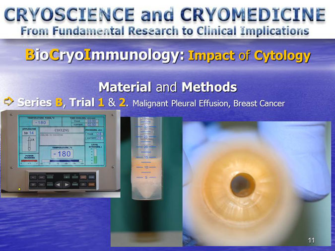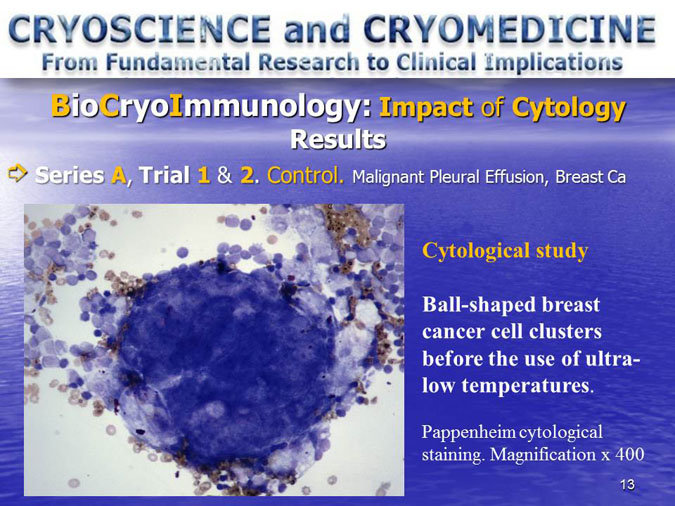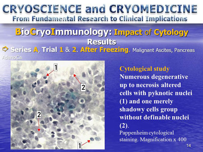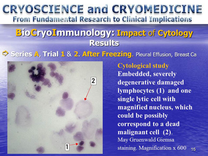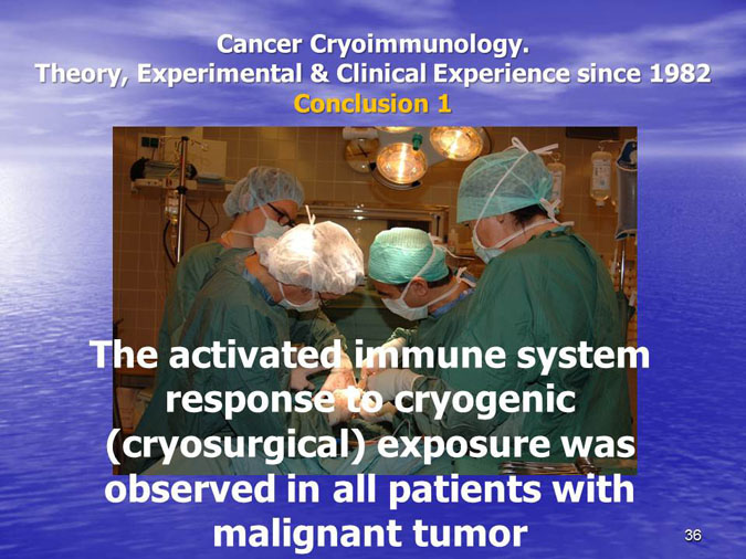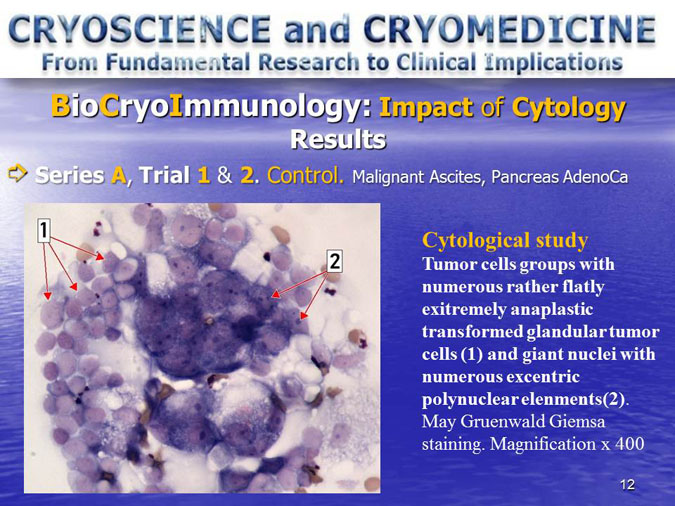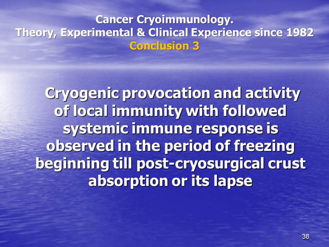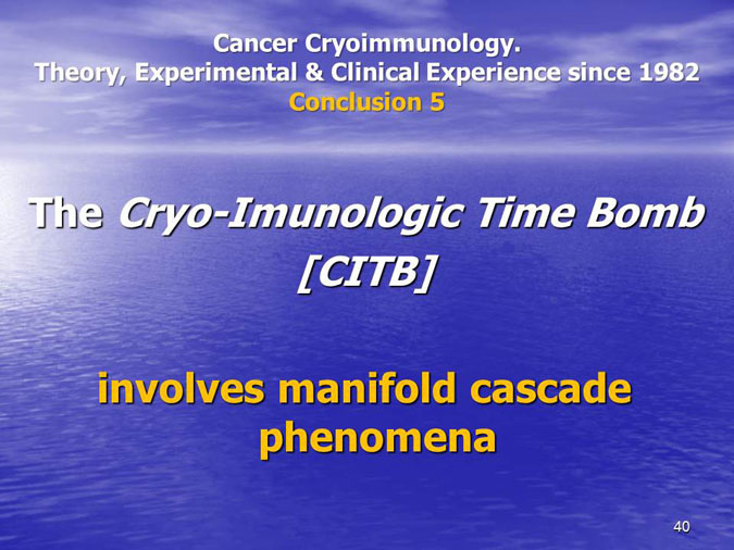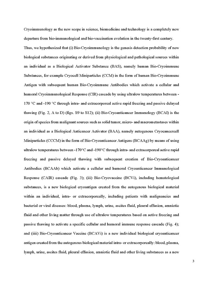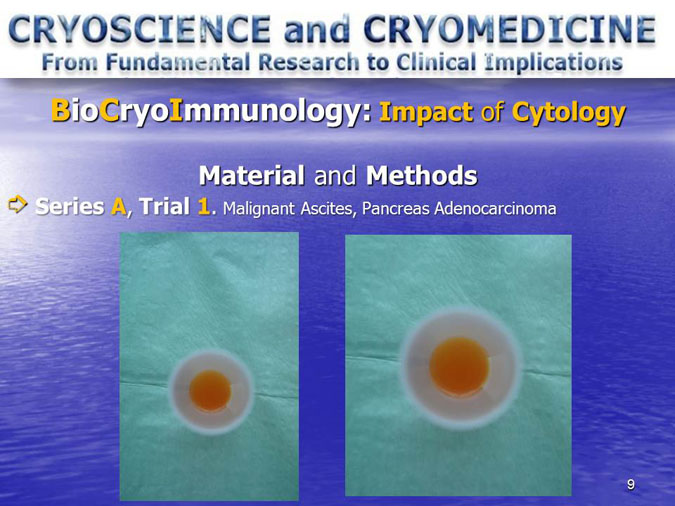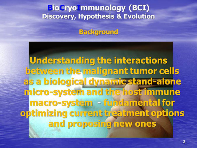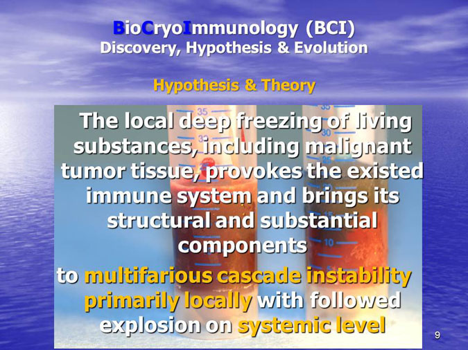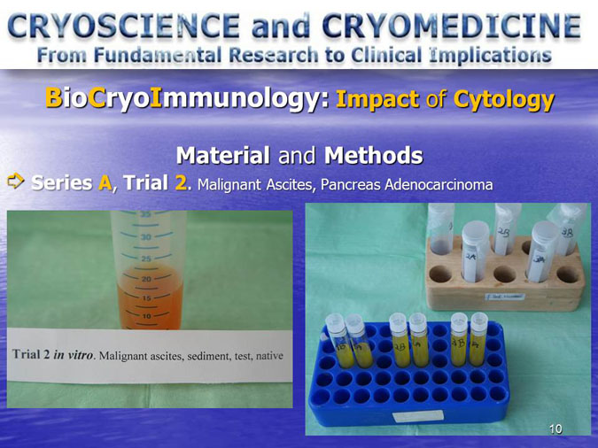 The novel research subject entitled “Biocryoimmunology” was reported in the numerous International Congresses and Conferences in form of “Oral Presentation” in fact,
