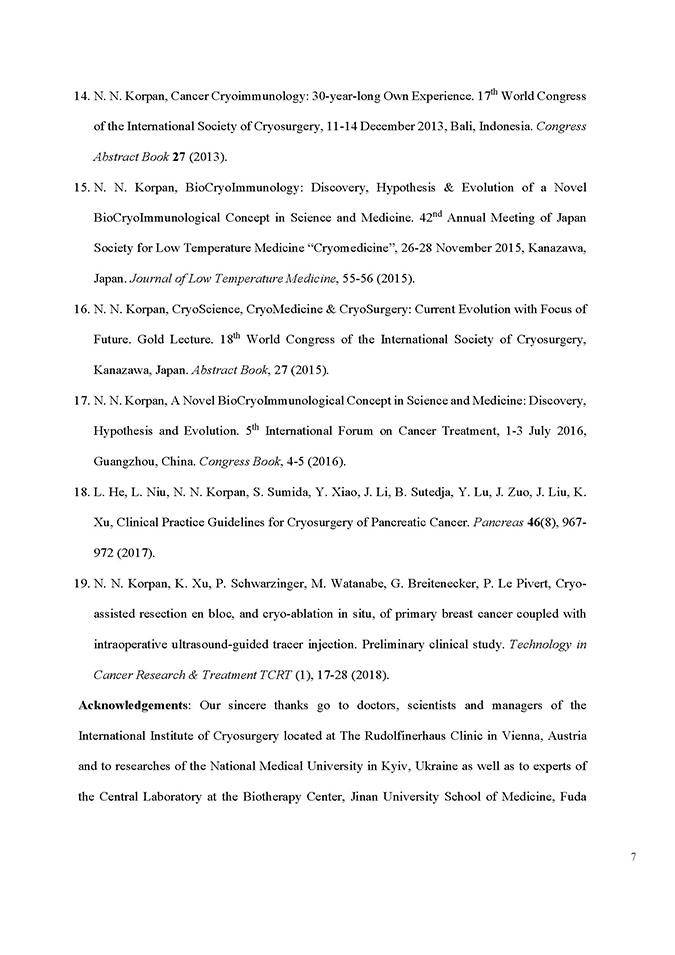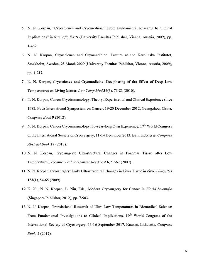 - Nikolai N. Korpan. International Society of Cryosurgery. Time Historical Leap from 1972 to 2022. Cryobiology, 2022; 111. https://doi.org/10.1016/j.cryobiol.2022.12.003